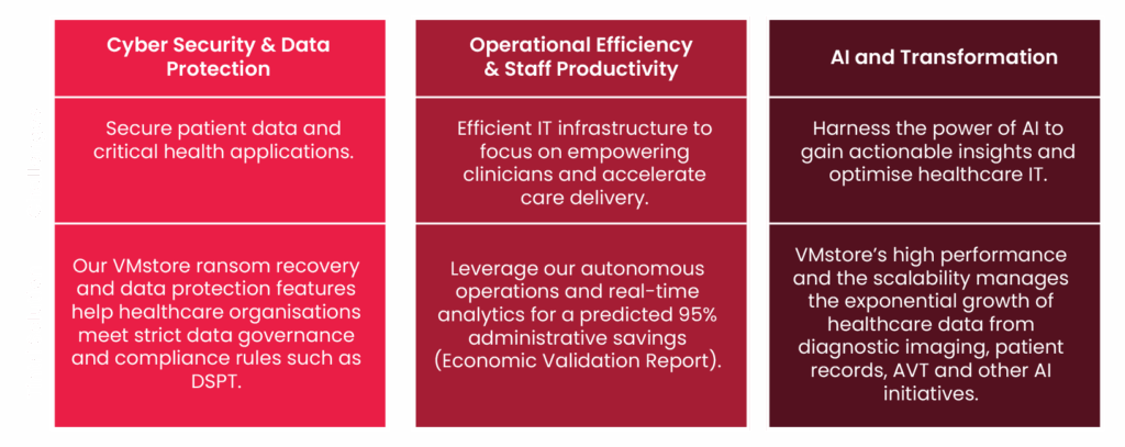We know what keeps you up at night. Tintri’s VMstore is engineered to solve the most critical challenges facing NHS and healthcare organisations today: